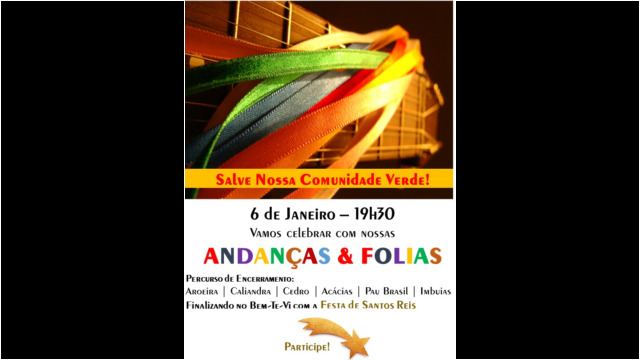 Uma das festas folclóricas mais antigas de nosso país está viva no Verde. Com o apoio e a participação de dezenas de cooperados, a moradora Maria Liége Fonseca presenteia o Verde com cultura e bênçãos. Participe da Folia – Nesta sexta-feira (06/01) às 19h30, Dia de Reis, as canções resgatadas de diversos cantos do país passarão pelas ruas do Setor Amarelo, fechando com chave de ouro as celebrações no Bem-Te-Vi, em nosso espaço de convivência.