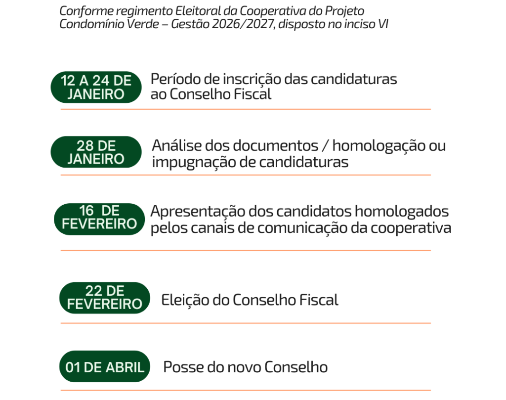 Cronograma eleições: Conselho Fiscal 2026